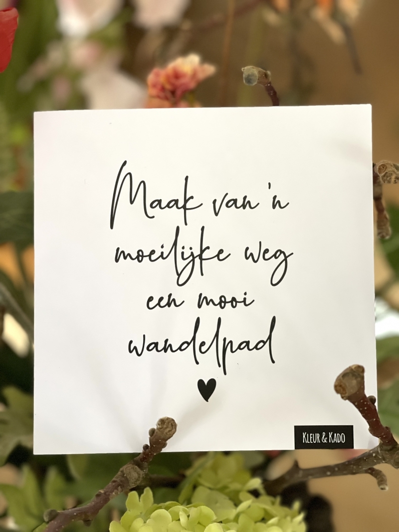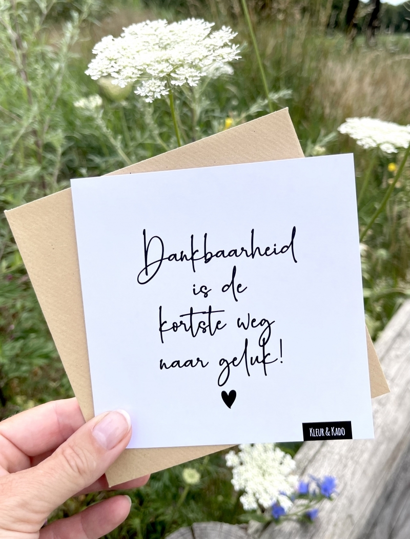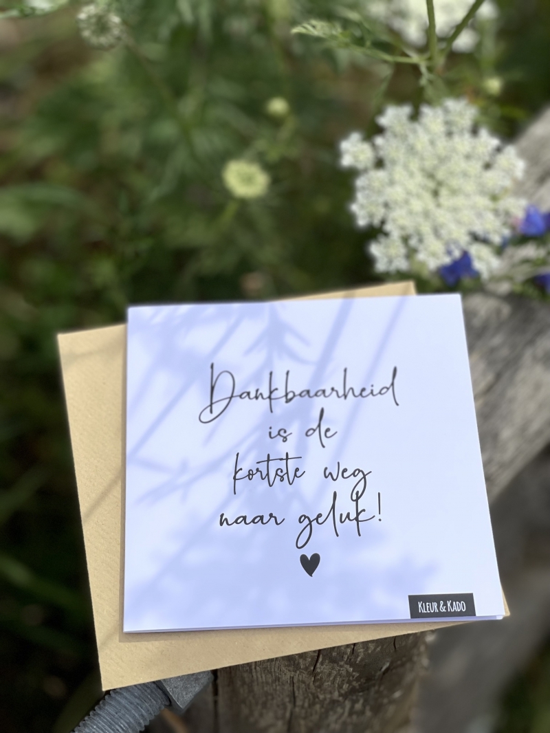 Het is een dubbele kaart vierkant 13x13cm met kraft envelop en per stuk verpakt in folie.